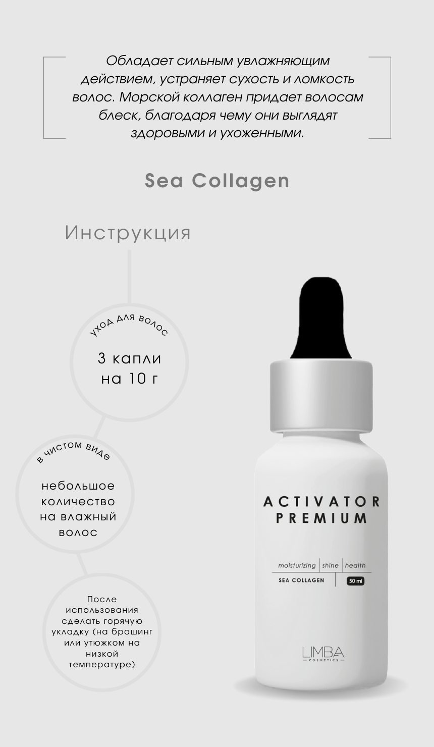 Активатор Sea Collagen обладает сильным увлажняющим действием, устраняет сухость и ломкость волос. Морской коллаген придает волосам блеск, благодаря чему они выглядят здоровыми и ухоженными. Укрепляет и уплотняет структуру волос.