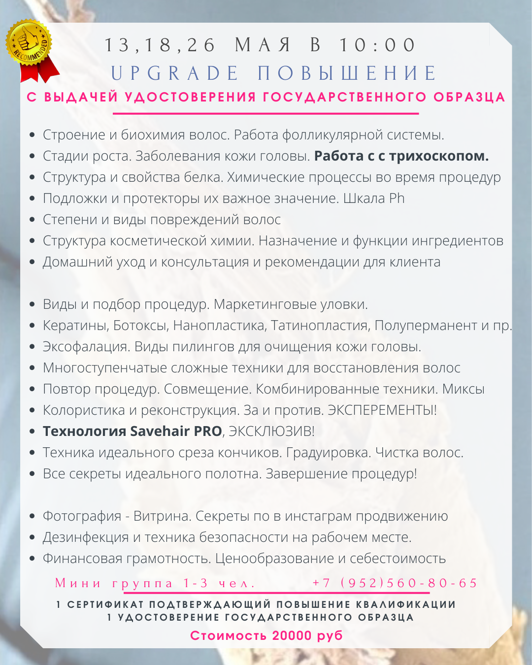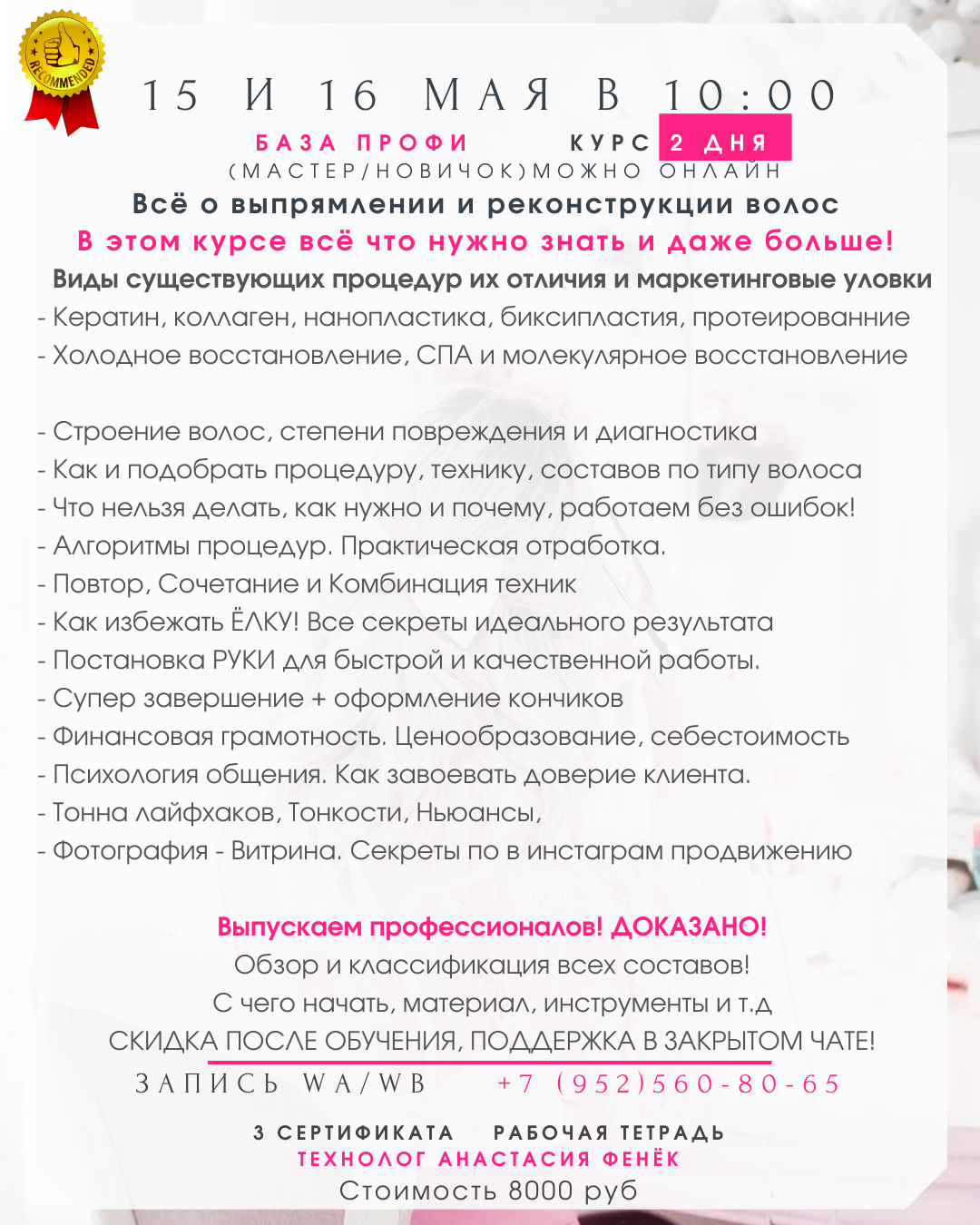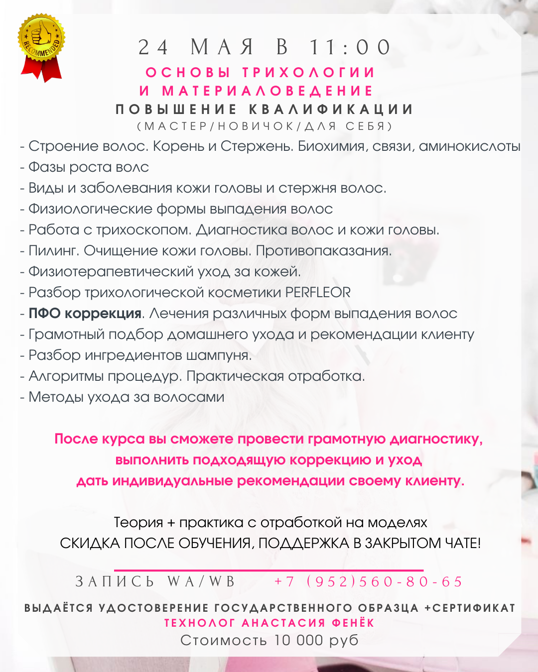 · Подходит мастерам с опытом работы!