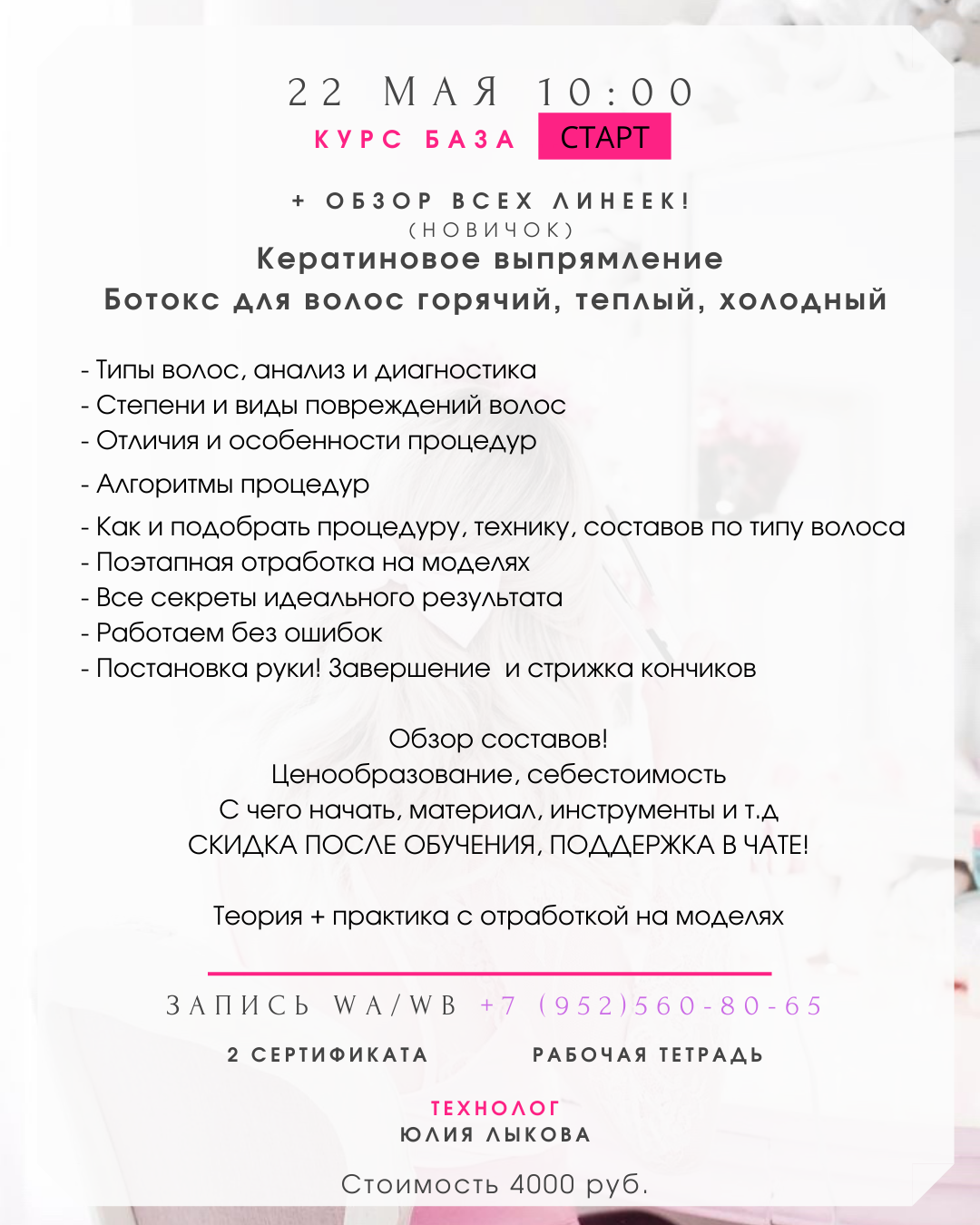 · Подходит мастерам с опытом работы и новичкам с нуля!