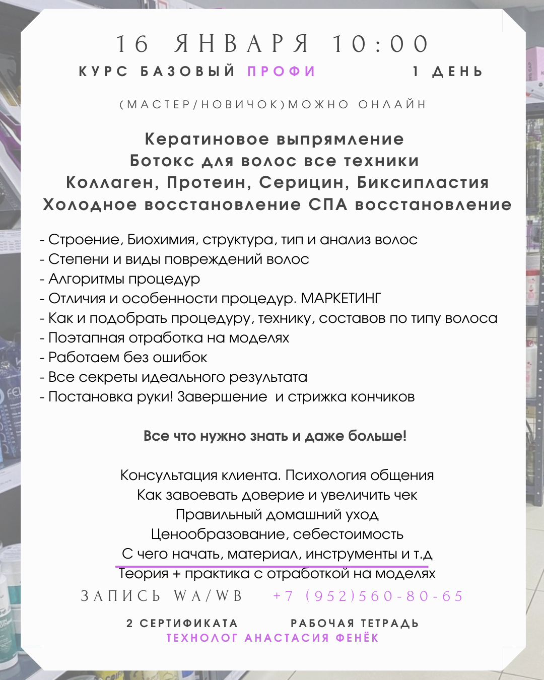 ТЕОРИЯ + ПРАКТИКА с отработкой на модели